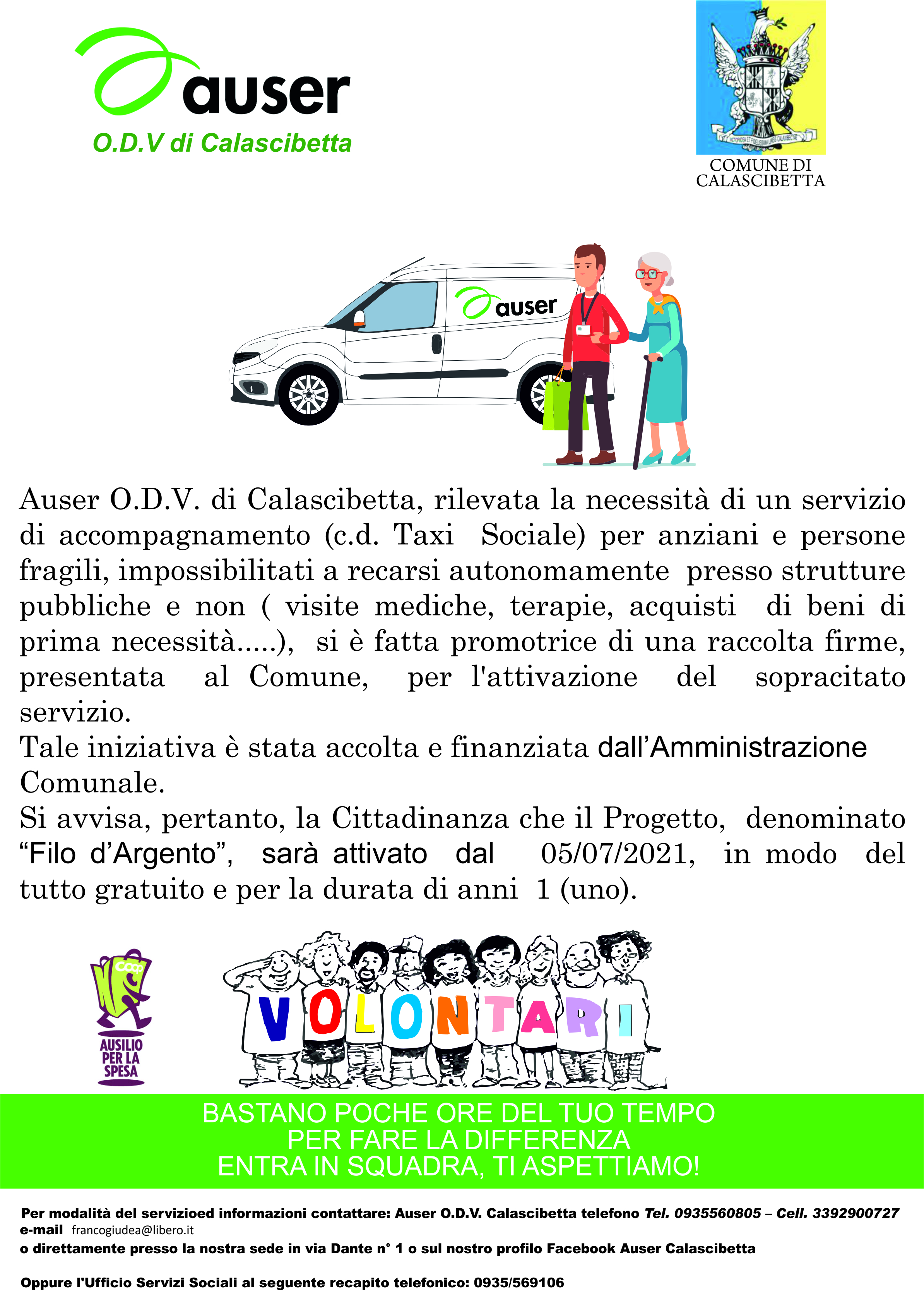 Le persone interessate possono contattare l'Auser di Calascibetta – Via Dante n° 1