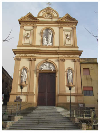 Nel 1371 inizia la costruzione del Convento dei Padri Carmelitani. Esso abbracciava l’attuale Municipio, la casa Parrocchiale, la villa comunale e la Chiesa della SS. Trinità, da cui proviene il gruppo marmoreo “L’Annunciazione”, attribuito al Gagini, oggi posto dietro l’altare maggiore dell’attuale tempio del Carmelo.